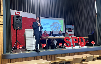 Eine der zentralen sozialen Fragen des Abends ist die Wohnungsnot, der man auch auf kommunaler Ebene begegnen muss. So berichtet Bürgermeister und Mitglied des Kreistags Christian Eheim (SPD) aus Graben-Neudorf auf Einladung der Kreis-SPD in einem Impulsvortrag von seinen Erfolgen und Konzepten.