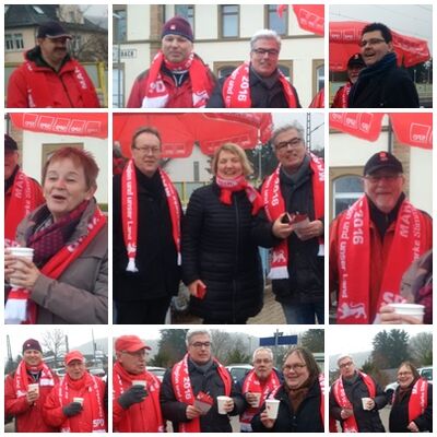 Bis 8:30 ist der Ortsverein vor Ort, dann lassen die großen Pendlerströme nach, Markus und Katja müssen weiter, der Terminplan ist prall gefüllt. Die Helfer sind durchgefroren aber bester Laune über den gut gelungenen Infostand.